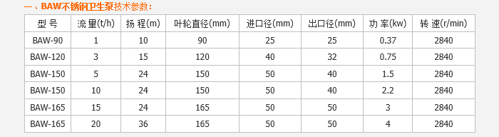 卫生级卫生泵属单吸、单级、离心式卫生泵,适合输送牛奶、饮料、酒等各种液体,是食、化工、医药等行业不可缺少的输送设备。吸取之温度为200ºC左右。其中高扬程泵特别适用于管式杀菌、酸奶持温设备、CIP清洗等阻力较大的系统中应用。