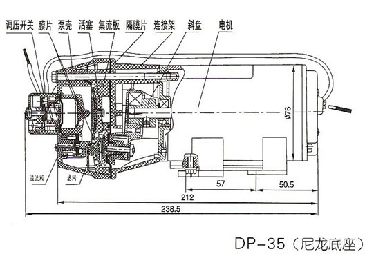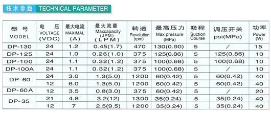 DP型微型电动隔膜泵是用微型直流电动机(电压为12V、24V的电动机)做动力驱动装置,驱动内部机械偏心装置做偏心运动,由偏心运动带动内部的隔膜做往复运动。