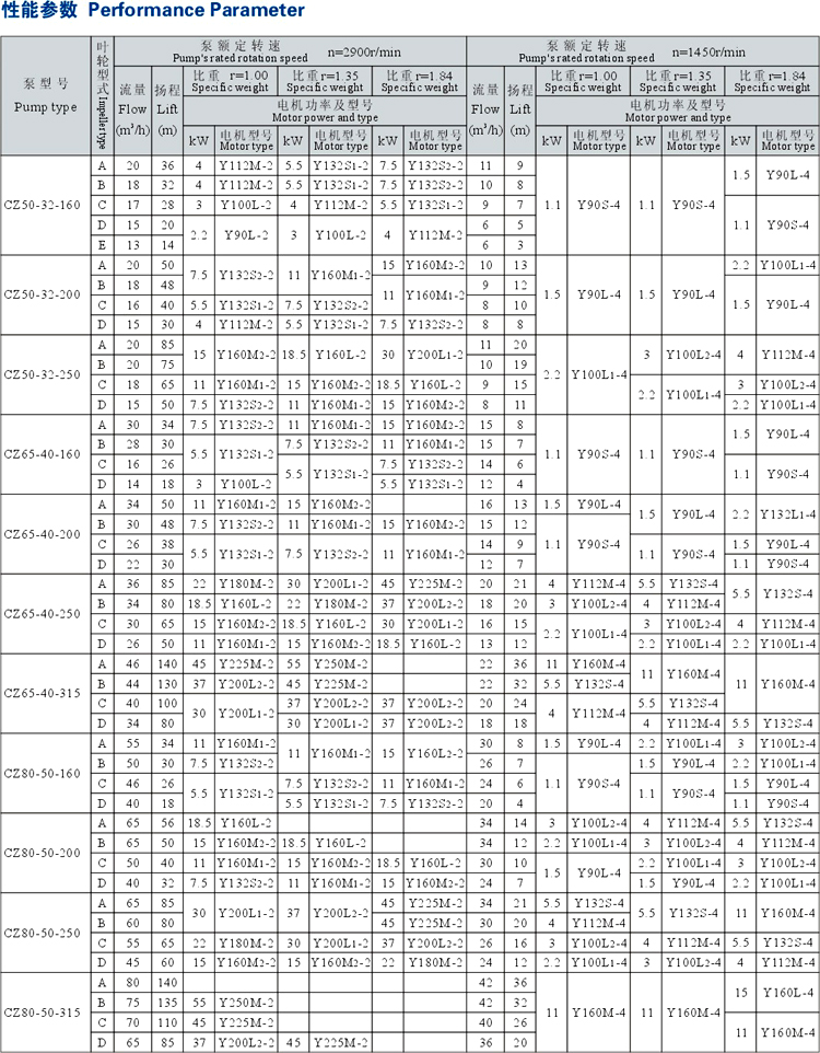 化工离心泵的性能范围包括了IH系列化工泵所有性能,其效率、汽蚀性能等指标均超过IH泵,可与IH型泵进行单机互换。泵转速分为2900和1450(转/分) 两种。