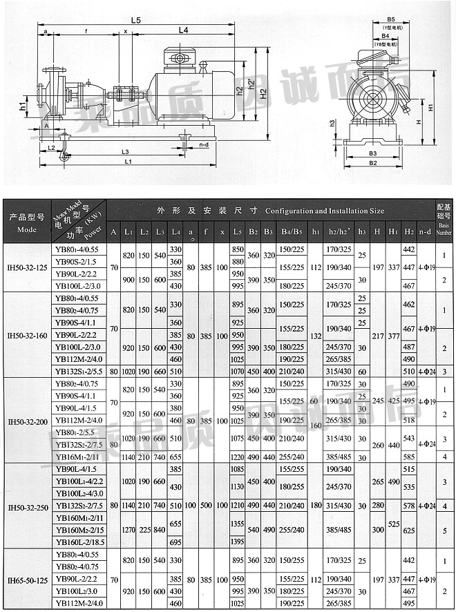 IH型系列泵有29个基本型,其中22个双速(2900、1450r/min)经过A、B两种型式的叶轮直径切割变型后,达112个规格。