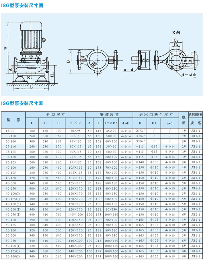 1、ISG型立式管道离心泵,供输送清水及物理化学性质类似于清水的其他液体之用,适用于工业和城市给排水、高层建筑增压送水、园林喷灌、消防增压、远距离输送、暖通制冷循环、浴室等冷暖水循环增压及设备配套,使用温度T<80℃。