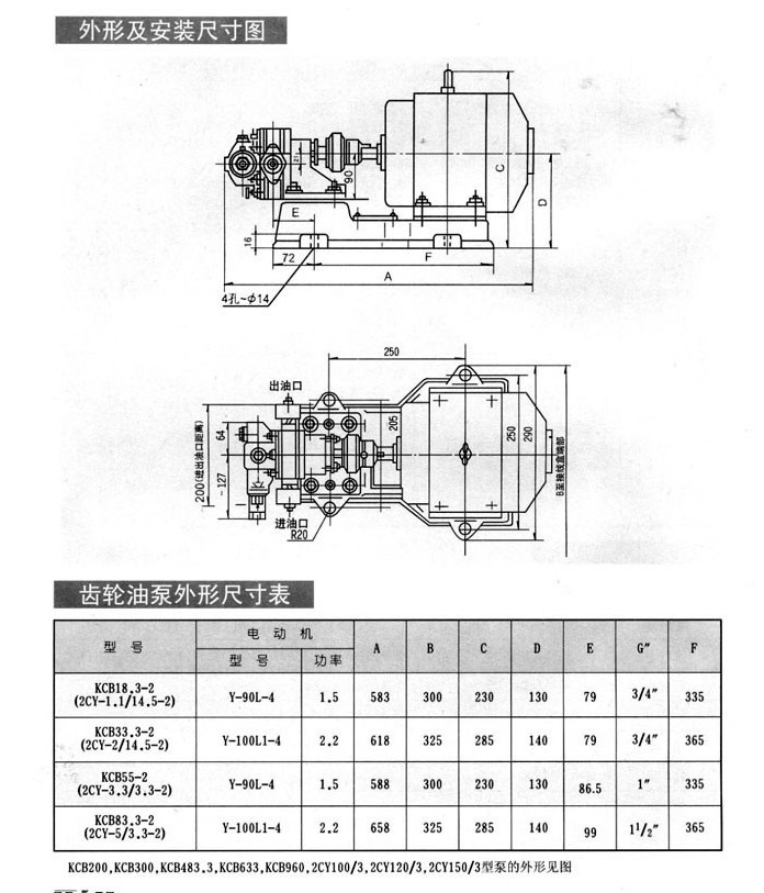 KCB(2CY)型齿轮式输油泵供输送温度不高于70℃)、粘度为5×10-5~1.5×10-3m2/s的不含固体颗粒和纤维物,无腐蚀性的润滑油、重油、工业轻油和食油等油类配用铜齿轮可输送低闪点液体,如汽油、苯等。适用于油库、码头、船舶、工厂、农场、矿山等。