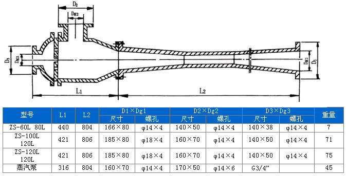 4、耐腐蚀性能好,花板材料用铸铁,铸铁衬聚在氟氯乙烯塑料、四氟乙烯和不锈铁制造,提高了蒸汽喷射器的耐压、耐酸、耐腐蚀性能,使之更适用于各种浓度的酸、碱和多种有机溶剂等腐蚀性介质。
