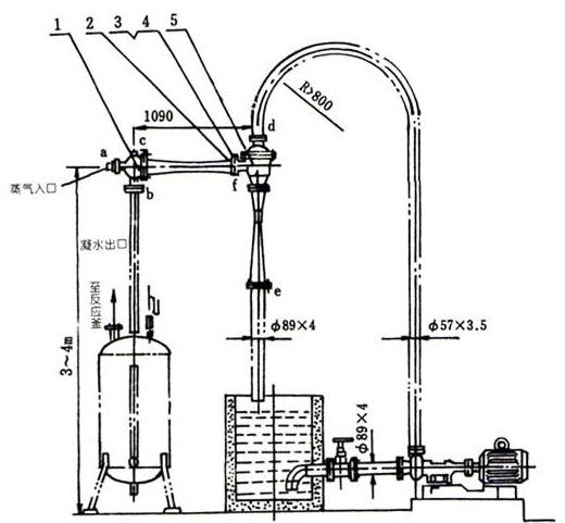 蒸汽喷射器是水力喷射串联蒸汽泵,它是利用水喷射和蒸汽喷射抽吸气体获得真空的新型设备。离心泵将静止水压力提高,压力水从蒸汽喷嘴中高速喷射出来,使喷嘴出口处的压力降低,形成真空,将外界气(液)体抽吸进来,共同进入混合管,通过扩散管而与水力喷射器配套使用,它比机械真空泵具有以下特点: