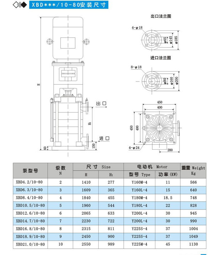 | XBD10.3/10-75W | 10 | 1.03 | 1450 | 68 | 18.5 | 3.0 |